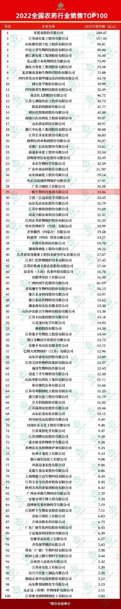 喜讯!一帆生物位列2022农药行业TOP100第29位! |