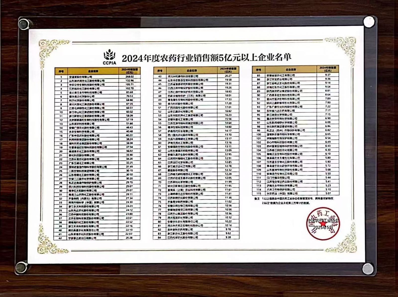 2025年5月15日,第十二届农药行业经济运行分析会在宁夏银川隆重召开。会议期间,中国农药工业协会发布了“2024年度农药行业销售额5亿元以上企业名单”,德信平台以30.70亿元的销售额,荣登榜单第25位。